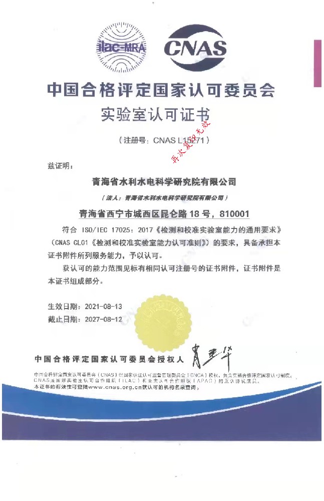 • 水利工程質量檢測單位資質等級證書(金屬結構類)