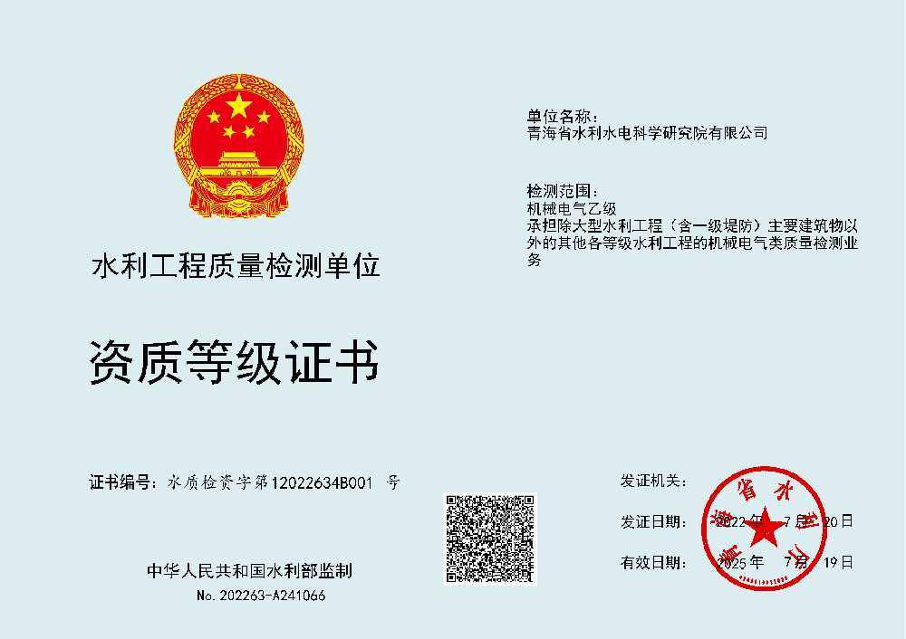 • 水利工程質量檢測單位資質等級證書(機械電氣類)